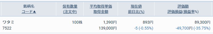 ワタミ(7522)の評価損益